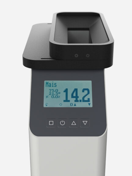 Urządzenie zapewnia dokładny pomiar pełnego ziarna w ciągu zaledwie 3 sekund, bez konieczności przygotowania próbek. Ma szeroki zakres pomiaru wilgotności do 40%. Urządzenie jednocześnie określa wilgotność, temperaturę oraz ciężar hektolitra (kg/hl), co czyni je kompleksowym narzędziem kontroli jakości ziarna. Prosta, wygodna i szybka obsługa dzięki dużemu wyświetlaczowi z menu w języku polskim.